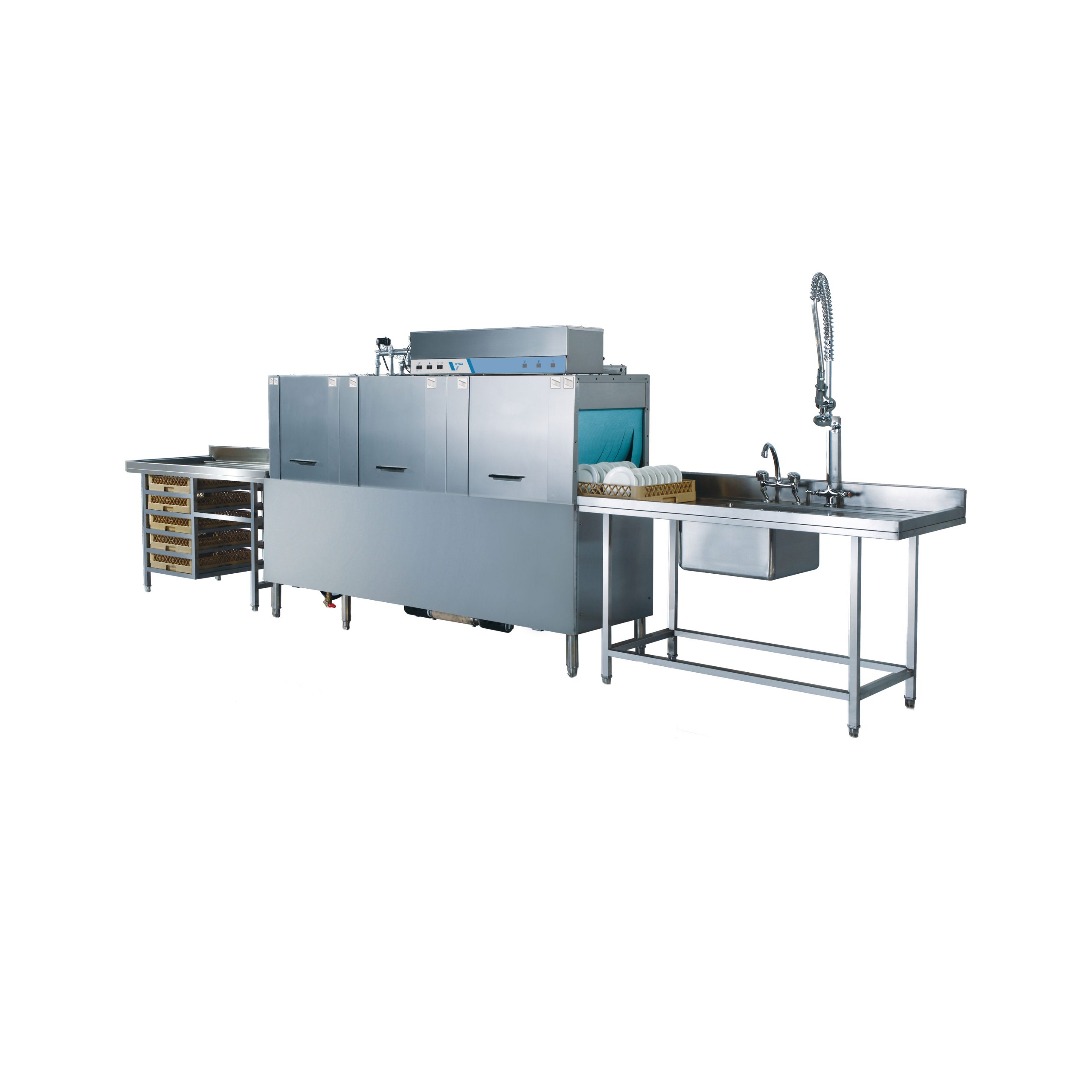 • Up to 250 racks per hour for single rinse and 280 racks per hour for duo rinse. Duo rinse system not only guarantee hygiene and also reduces running costs by 40%